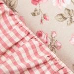 E' Impreziosito dall'Importante Volano che borda per Tre Lati il Cuscino. E' un Volano Alto di circa 13cm realizzato con Tessuto in 100% Cotone a Quadretti, abbinato alla Fantasia della Seduta.